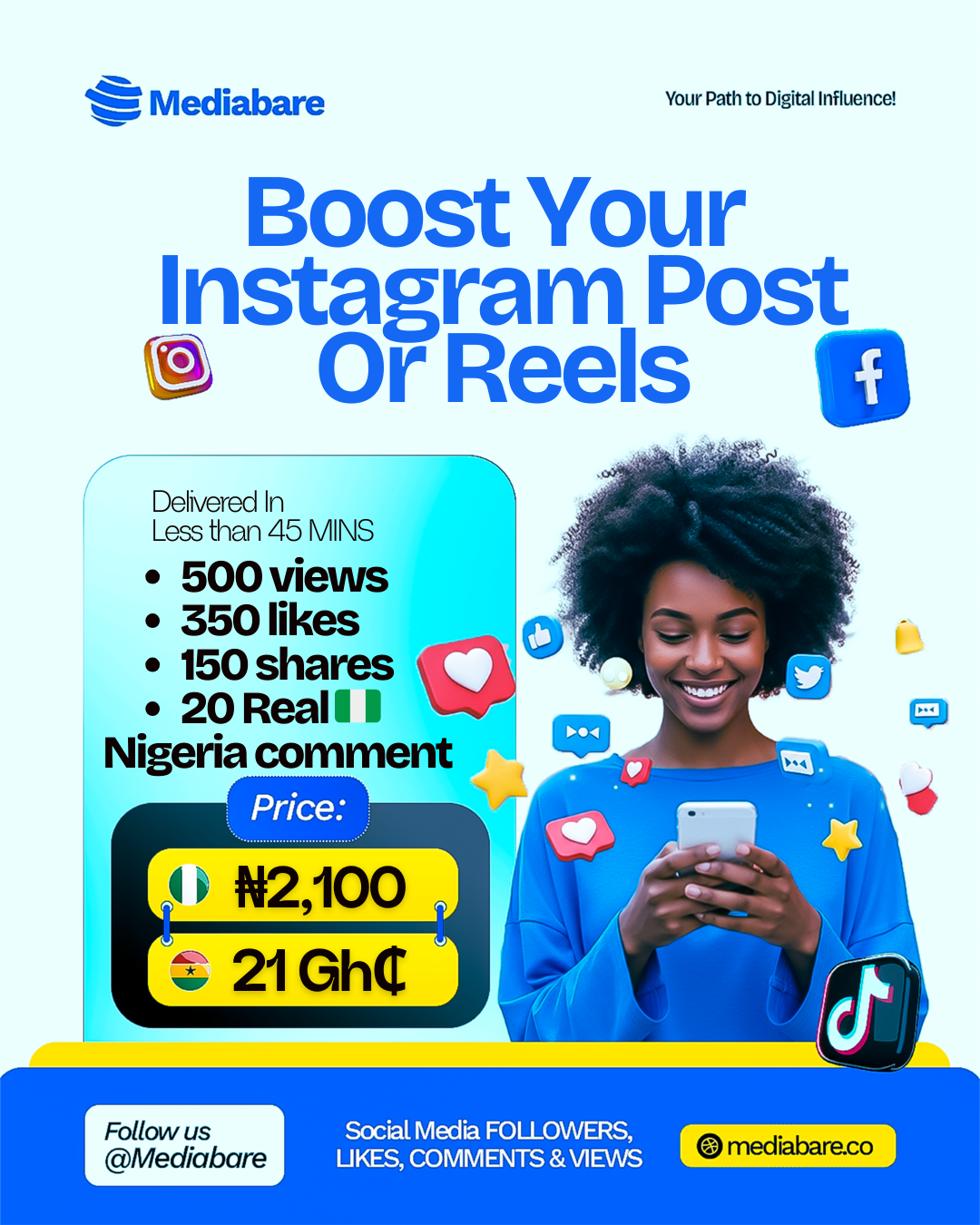 BOOST YOUR INSTAGRAM, TIKTOK AND FACEBOOK POST OR REELS FOR JUST 1,500 NAIRA
